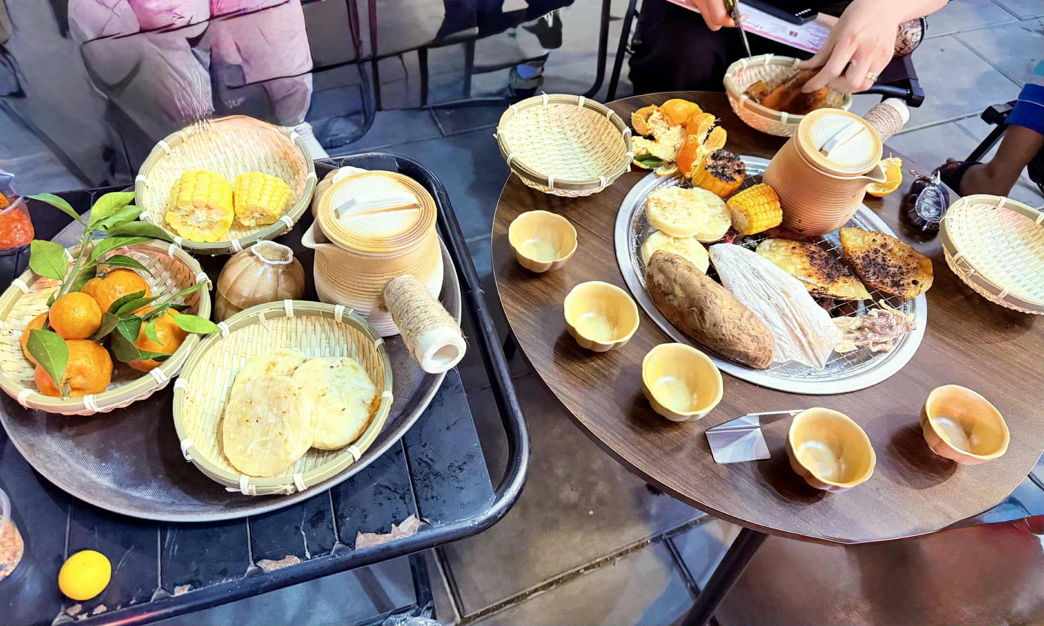 Bên cạnh trà sữa, bếp nướng còn được sử dụng để nướng các món ăn kèm như hạt dẻ, bánh sắn, khoai, ngô. Đây đều là những món ăn đơn giản, không cầu kỳ nhưng phù hợp với việc thưởng thức trong thời tiết cuối năm. Việc vừa uống trà nóng, vừa nướng đồ ăn giúp kéo dài thời gian trải nghiệm và tạo cảm giác trọn vẹn hơn so với việc chỉ uống đồ uống đơn thuần.