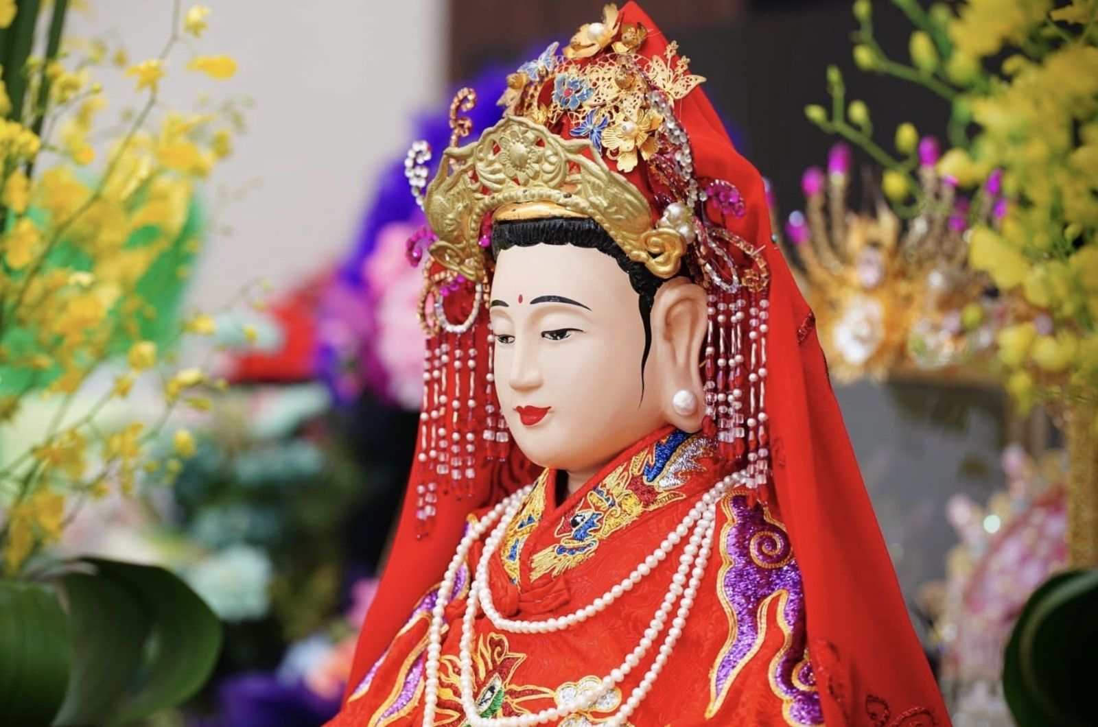 Tiến sâu hơn vào trong là gian hậu cung – nơi đặt tượng Thánh Mẫu Liễu Hạnh, biểu tượng trung tâm của tín ngưỡng thờ Mẫu. Tượng được chế tác từ gỗ quý, khuôn mặt hiền từ nhưng toát lên vẻ uy nghiêm.