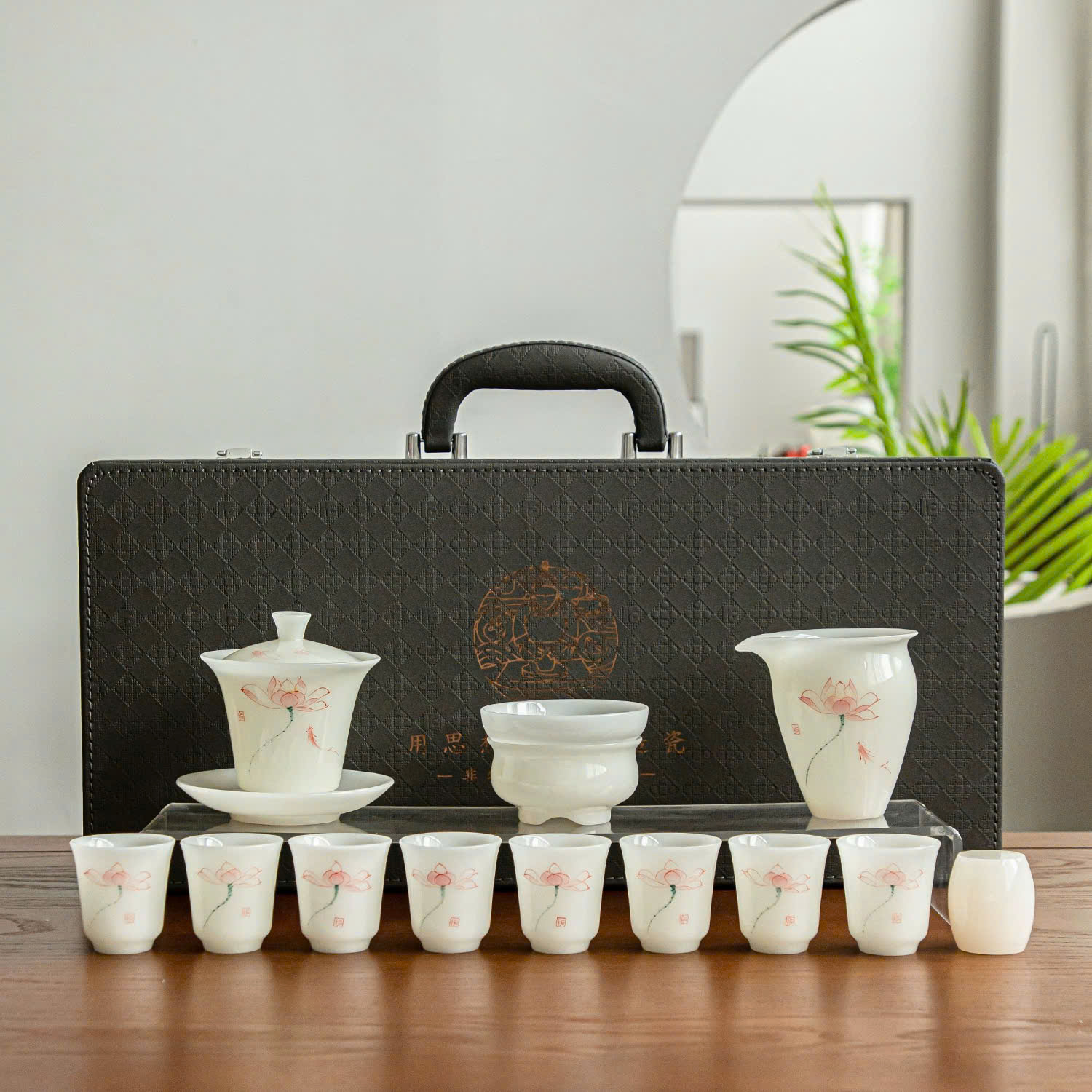 Bộ Trà Kung Fu Sứ Đức Hoá Ngọc Bích Liên Hoa
