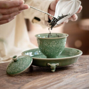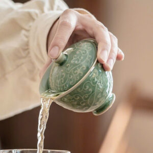 - Màu sắc: Màu xanh ngọc bích gợi liên tưởng đến những viên ngọc quý. Đây là màu men rất được ưa chuộng trong trà đạo vì nó tạo ra sự tương phản tuyệt đẹp với màu nước trà (đặc biệt là màu vàng xanh của trà Shan Tuyết hay màu đỏ hổ phách của Hồng trà).