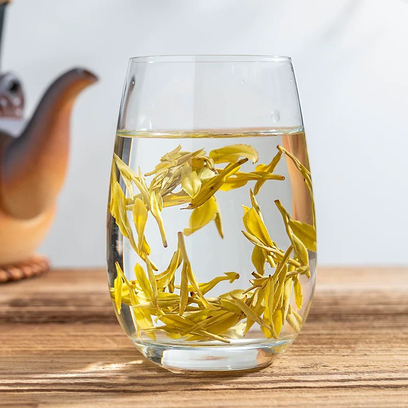 Lục Trà Hoàng Kim Nha tình cờ được phát hiện vào những năm 1990 bởi Trương Vạn Lý ở thành phố Dư Diêu, Chiết Giang trong một cánh đồng trà gần đó. Sau hơn mười năm chọn lọc và lai tạo, với sự hỗ trợ của các bộ phận liên quan của Đại học Dư Diêu, đã cho ra đời giống trà bạch tạng quý hiếm và là giống trà biến thể màu vàng duy nhất được trồng ở Trung Quốc..